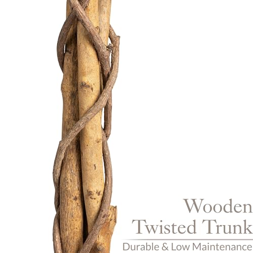 - NATURAL WOODEN TRUNK & TWISTS: The tree contains three natural wooden trunks to capture the lifelike look of a real Ficus tree. In addition, the trunks have three wooden twists wrapped around them for an attractive textured look. Because the trunks and twists are natural wood, no two trees are the same, making each tree completely unique.