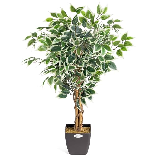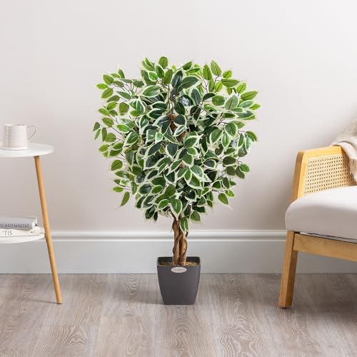 - 3FT VARIEGATED FICUS TREE: Looking to add a splash of natural greenery to your home or office? Look no further than this 3ft (90cm) Artificial Variegated Ficus Tree. Although it looks every bit as beautiful as a real Ficus tree, it requires no sunlight, water, or pruning. So, even if you lack green fingers, there’s no danger of it dying from neglect.