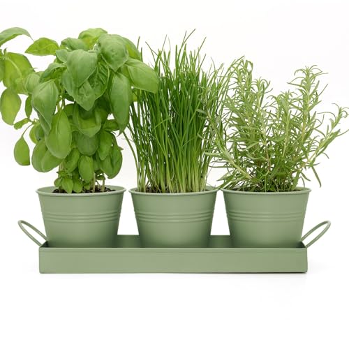 - The metal plant pots are ribbed for extra strength and style. This set looks great and will look great sitting on any kitchen windowsill. Place the tray anywhere you like as long as it is a bright area for your living herbs/plants to grow. Makes a perfect gift for anyone who loves a salad or cooks fresh food.