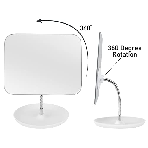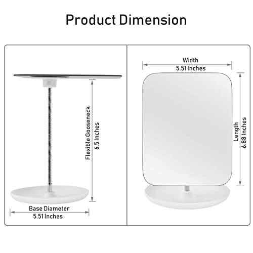 - 360 DEGREE FREE ROTATION – Portable countertop travel folding vanity mirror with stand, very flexible rotating swivel gooseneck that can be rotate to any a desired angle, can be adjusted freely and repeatedly to find your best makeup viewing position.