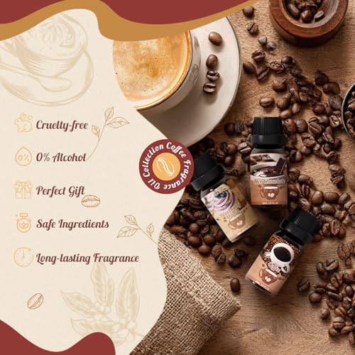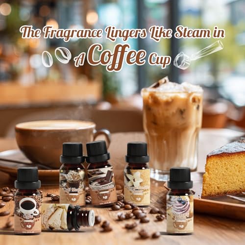 - Indulgent Café Aromas at Home: Immerse your space in the comforting scent of a coffeehouse with this coffee essential oil set. Featuring warm, inviting notes like Blueberry Muffin, Coffee, and Hot Chocolate, each blend brings a rich café vibe to your home.