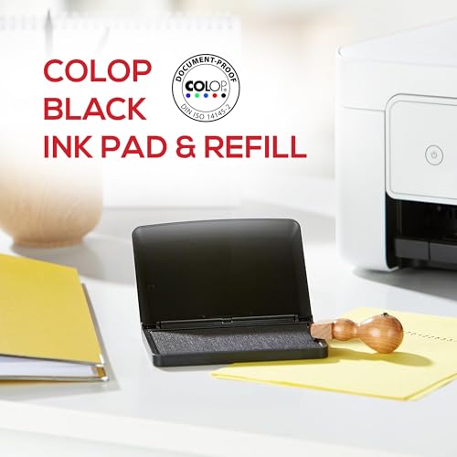 - COLOP Black Ink Pad – for use with traditional rubber stamps. Made with water-based, non-toxic materials, these pads are long-lasting, giving thousands of top-quality prints