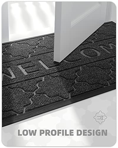 - PREMIUM MATERIAL: This outdoor door mat has heavy-duty polyester topside and anti-slip flat rubber backing, which makes this welcome mat outdoor helps use in all weather, not easy to slide; at the same time this doormat has an artistic design with a "Welcome" pattern