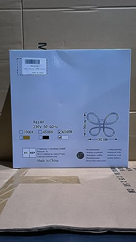 - 【Specification】Ceiling lamp size: 11.8 * 11.8 * 2.56 inch / 30 * 30 * 6.5cm. Recommended area: 10 – 15 ㎡. Color temperature: 6500K 3400LM