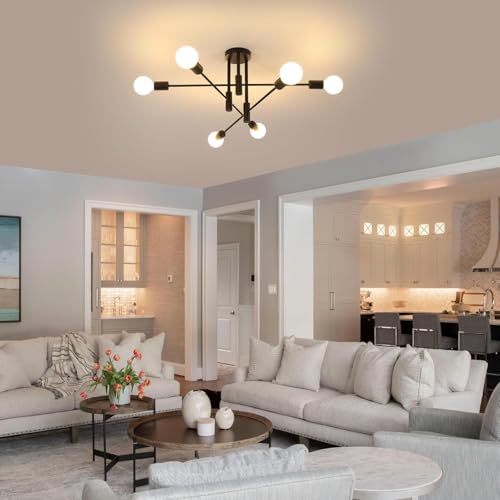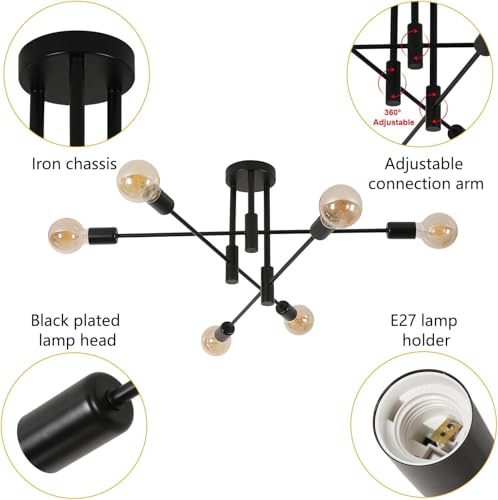 - 【Adjustable Arms】: The Sputnik ceiling light features a modern design with 6 multi-directional lampholders, 3 poles of different lengths and 3 black adjustable arms. Our chandelier arms can be rotated horizontally, so you can adjust your favourite shape.