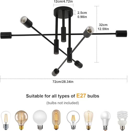- 【Parameters】: Size: 72 * 72 * 32 cm / 28.34 * 28.34 * 12.59 inches. Ceiling Diameter: 12 cm. Voltage: 230V 50-60Hz. Vintage chandelier is equipped with 6 E27 bases, the maximum wattage of each bulb is 60W, suitable for all kinds of E27 bulbs (bulbs not included). Lighting area: 10-20 square metres.