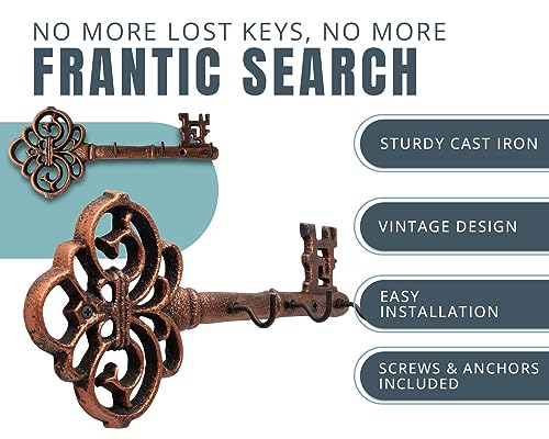 - Vintage, unique design – The wall mounted key hanger can be attached to a wall or on the entrance door with included screws and anchors. The padlocks included in the design are a subtle hint at the hook's true purpose that whisper "Hang you keys here!" The hooks are strong and solid, but small enough to fit most key chains.