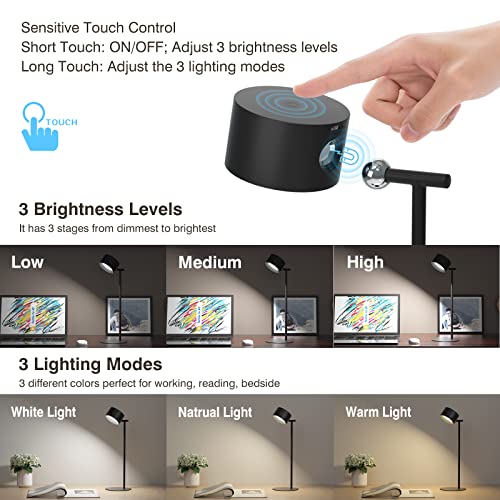 - 【9 Lighting Choices and Touch Control】There are no complicated buttons, you only need to touch a button to switch between 3 color temperatures and adjust 3 levels of brightness, it will help you to find the most suitable light. The memory function will help you remember the last mode and brightness that you used for more convenience next time.