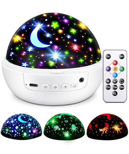 - 【7-IN-1 NIGHT LIGHT KIDS】Baby sensory toys for babies is absolutely worthy 7-IN-1 choice: 3 FILMS+93 EFFECTS+REMOTE+TIMER+3 BRIGHTNESS+360° ROTATION+EXQUISITE PACKAGE. Star projector night light kids sensory lights has 3HD Films-STARS&MOON,OCEAN ANIMALS,DINOSAURS. Baby sensory toys for autism,baby girl gift has 5 based colors (red/blue/green/yellow/purple)+many mix.Baby sensory toys for babies sensory lights meet all yr need.Plug in night light for kids sensory lights' 360° Rotation+Timer(1-2-4-8h) made baby night light kids awesome sleep helper!Smart remote+star projector night light kids own buttons make it easy to use!Take sensory toys for babies home as baby girl gift baby boy gifts!