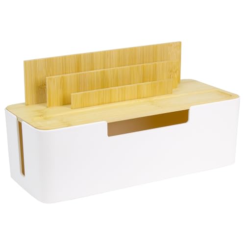 - 【Durable and High-Quality Material:】Crafted from premium plastic, this cable management box is designed to withstand daily use while keeping your cords protected and secure. The bamboo lid adds a layer of sophistication