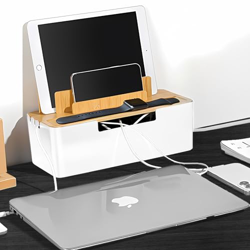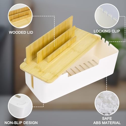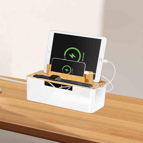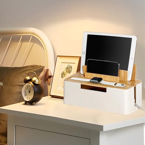 - 【Stylish Bamboo Lid with Stand】The unique bamboo lid not only adds a natural touch to your desk, but it also functions as a stand for your phone or tablet, making it a practical and versatile cable organiser box