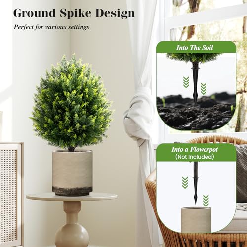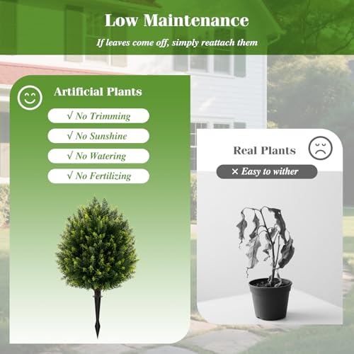 - 【Ground Spike Design】Simply connect the topiary ball to the ground spike with no tools required, install them in soil or a flowerpot (not included) to enhance any area instantly. Should any leaves detach, they can be easily reattached without fuss.