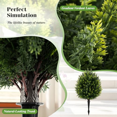 - 【Lifelike Appearance】The 61cm tall artificial cypress topiary ball trees set of 2 feature delicately gradient verdant leaves and remarkably realistic trunks. The 2 pack greenery plants bring the lifelike beauty of nature into your space
