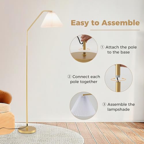 - 【Assembly Is a Breeze】Putting together this modern standing lamp is easy. Simply attach the pole to the base, connect each pole together, and assemble the lampshade, and you are ready to enjoy your own time in style.