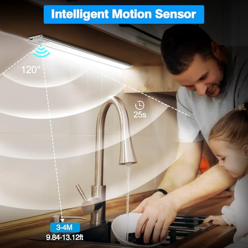 - 【ON/AUTO/OFF MODE & Easy to Switch】Our motion sensor under cabinet lights has 3 different lighting modes: ①Automatic mode ②Always-on mode ③Always-off mode; In automatic mode, The cupboard lights automatically turn on when movement is detected within a 10 ft / 120°range. Also the mode switch on light is clear and convenient to to change mode.