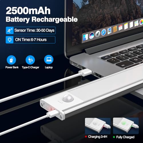 - 【2500mAh USB-C Rechargeable Battery & Long Duration】Equipped with a 2500mAh rechargeable battery and Type-C charging port, our led cabinet light is compatible with all DC 5V-1A charging output adapters via Type-C charging cable, they only needs to be charged for about 4-5 hours to achieve the auto-sensing time of 1-2 months,using the constant mode 6-7 hours (Note: Please charge before first use)