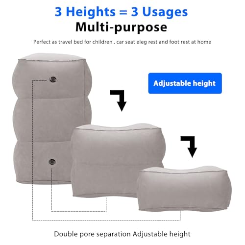 - [Adjustable Height Design] The practical inflatable footrest has two valves, which can be adjusted to three heights, and three sizes can meet your different height requirements. Inflatable foot pedals can improve blood circulation and reduce leg swelling by elevating the legs. Helping you and your kids get better rest on the go.