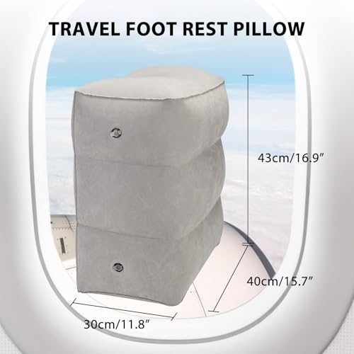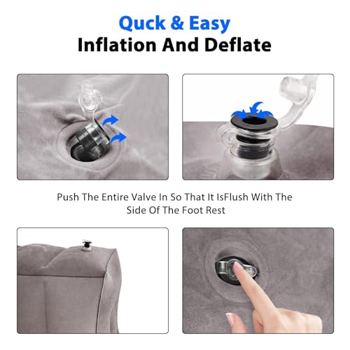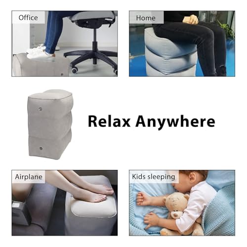 - [Relaxing Design] The inflatable footrest promotes blood circulation, reduces muscle tension and soreness, and makes your legs and feet feel relaxed while traveling. Helps your feet and legs rest on the plane, and you can sleep more comfortably in your seat to save energy. It can also help reduce swelling and relieve back pain from prolonged sitting.