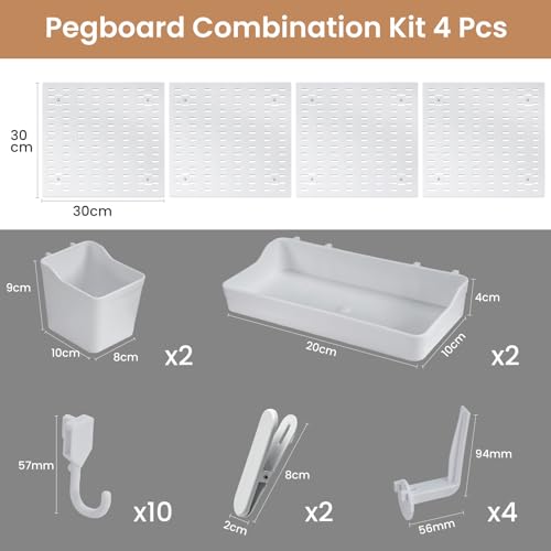 - [Modular Combination Design]This wall organiser board set includes 4 pegboards (30×30cm each), which can be freely combined into different layouts to maximize storage and creativity.