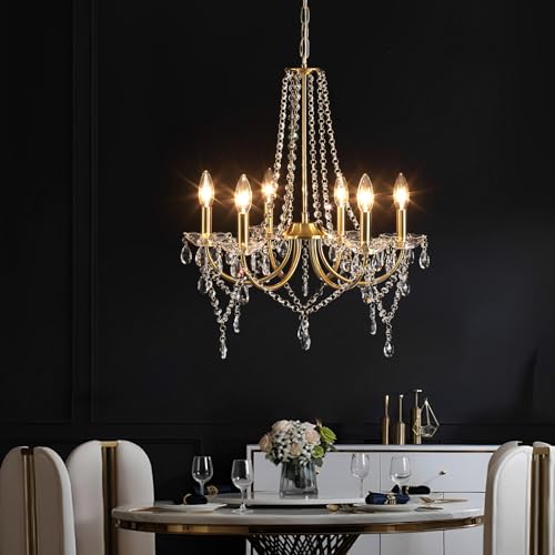 - 【Retro Elegance Crystal Chandelier】This golden crystal chandelier has 6 arms, and the golden arms and transparent crystals look particularly elegant and luxurious under the light, creating a romantic and warm atmosphere with ease.