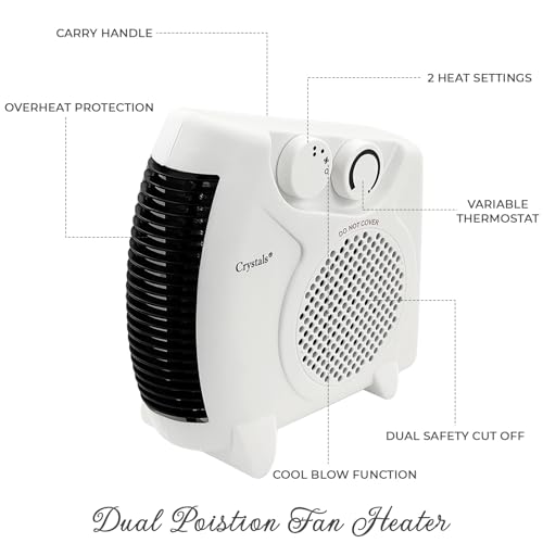 - SPACE-SAVING DESIGN: The compact design of 25 x 25 x 12 cm (Approx) makes this fan heater perfectly suitable for use on narrow spaces such as desktops and nightstands and small spaces wedged between furniture. The heater's thin construction blends into your space while keeping an unobtrusive presence.
