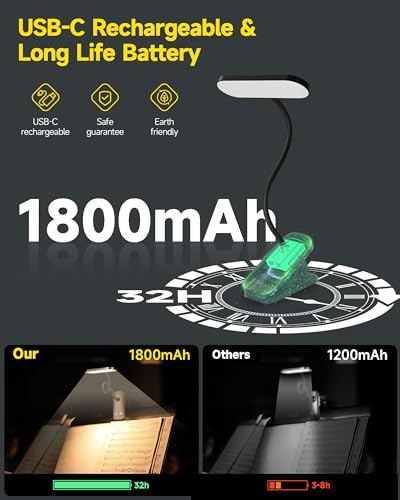 - Portable Rechargeable Reading Light- Handy small clip desk lights feature a 1800mAh rechargeable battery, providing 4-32 hours of cordless use which is convenient for movable. The wireless clip on lamp for desk is battery operated and can be used even during power outages. The battery-powered desk work light also comes with a 3.3ft USB-C cable for convenience charging and be fully charged in just 4 hours