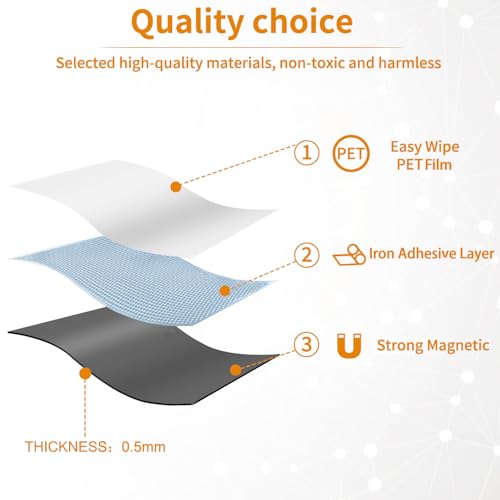 - EASY TO INSTALL – The magnet has a strong adsorption capacity. Our kitchen whiteboard has 0.55mm magnetic, so it’s easy to attach to any iron or magnetic surface. (like fridge doors, file cabinets, shelves, rigid whiteboard, etc.) Except stainless steel and acrylic objects. Also sliding and falling off never happen