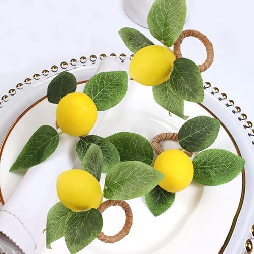 - Table Decorations: A napkin ring consisting of yellow lemons and green leaves will bring a touch of nature to your table. Paired with beautiful tableware, your well-decorated dining table will perfectly showcase the combination of nature and modern craftsmanship. The beauty of fusion. Make your dining table more lively and stylish.