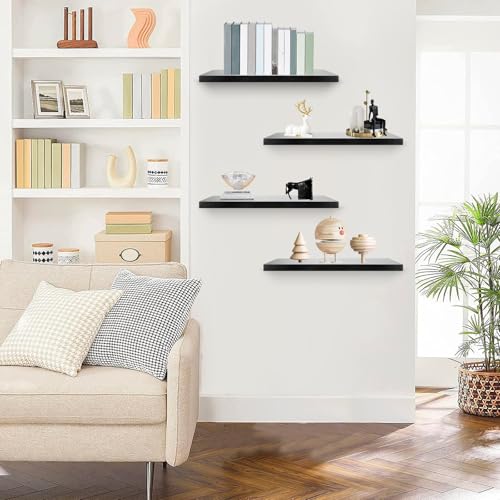 - Perfect Size – CYEER black floating shelves each measuring 40 x 15 cm (15.74 x 5.9 inches) with a thickness of 1.6 cm (0.6 inches). The package comes with 4 shelves, eight screws, and eight expansion plugs, ensuring easy installation and maximum wall space utilisation