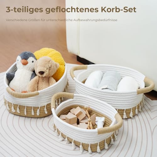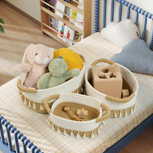 - The set of three offers versatile uses: L (32 x 22.5 x 14 cm): Perfect for storing diapers, blankets, or larger toiletries – everything stays neatly in its place. M (26.5 x 20 x 14.5 cm): Ideal for stuffed animals, baby books, or smaller items of clothing that need to be easily accessible. S (21.5 x 14.54 x 9.5 cm): Excellent for pacifiers, rattles, or other small toys that need to be quickly and easily accessible. Perfect as a changing table organizer or basket storage for the baby's room