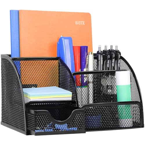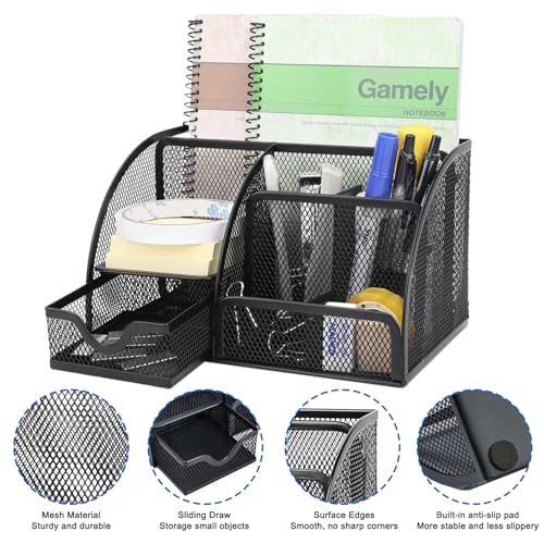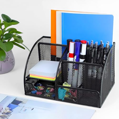 - DURABLE METAL MESH DESIGN: Crafted from robust metal mesh, this desktop organiser is built for lasting durability. Its stable construction ensures your school supplies stay securely in place, making it an ideal office accessories and pen holder that stands up to daily use.