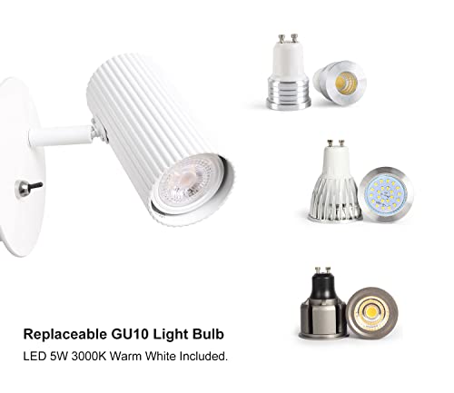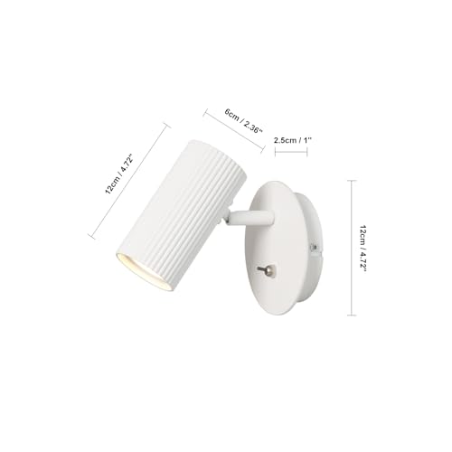 - Wall Lamp white: This Wall Mounted Spotlight is aluminum die-casting lamp body with high-quality powder coating in matt white color. Rust and corrosion resistant. The toggle switch is on the base of the lamp for convenience and easy control. It can be adjustable and mounted in the up or down position. The swiveling lamp head can be rotated 350 degree (horizontal) and 90 degree (vertical). Free to get the most ideal light angle when using the product.