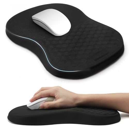 - HIGH-QUALITY MATERIAL: Made of silky breathable Lycra fabric, this mouse pad with wrist rest is durable and comfortable to touch. The raised memory foam provides good elasticity and prevents deformation, ensuring smooth mouse movement