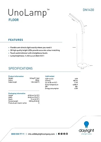 - SUITABLE FOR MULTIPLE ENVIORNMENTS – The Uno Floor Lamps by The Daylight Company is a versatile lighting solution that excels in various environments. With its slimline and modern design, this Lash light is equipped with numerous useful functions, making it an ideal choice for salons, tattoos, lights for living room, parlors, craft rooms, work office, nail salon, lamps for bedroom, home improvement and more.