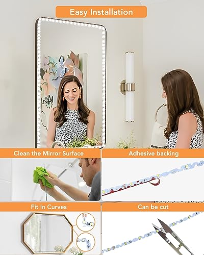- 🌟【Easy Installation】No drilling required, Just peel off the double-sided tape on the back of the strip and you can use it. Daymeet LED vanity light strip is made of real strong self-adhesive tape, which can be well fixed makeup mirror lights.