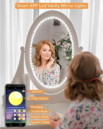 - 🌟【Bluetooth Vanity Lights for mirror 】Vanity Lights Two Control Methods: ①App control. Bluetooth APP control, you can scan the QR code on the controller box or manual, download the app ""Lotus CCT"" in Apple Store or Google Play. ② 3-Button Controller Box.you can choose adjust any level of brightness(10% -100% stepless dimming) you need .