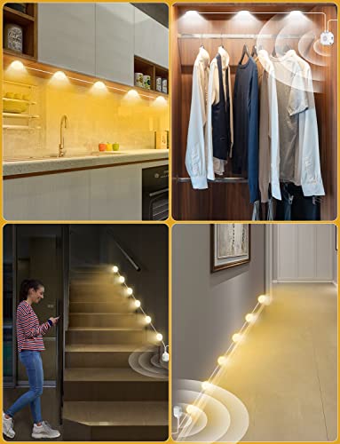 - 【Motion Sensor Under Cabinet Lights】Come with 6 pack led cabinet lights. Each kitchen cabinets light has 12 LED beads. The 16.5 Ft adjustable hardwired can meet the different cabinets needs. The sensor light will automatically turn on quickly when it senses your approach, and it will turn off after you leave. Time for off adjusted 38/75/150/300 seconds.