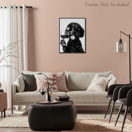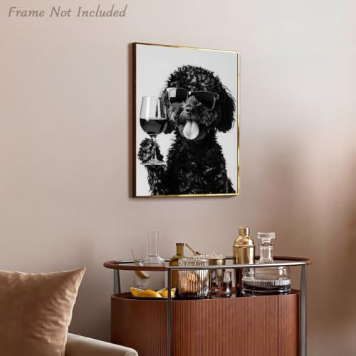 - FUNNY CANVAS PRINTS: As the images shown, the wall art is designed with a dog wearing a pair of sunglasses and holding a wine glasses, adding much of fun for places you wanna put on the walls.