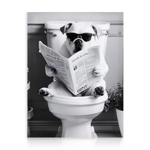 - Unique Design: This quirky black-and-white print depicts a humorous scene of a dog on a toilet, blending whimsical illustration with minimalist design. Its playful concept adds lighthearted humor to functional spaces.