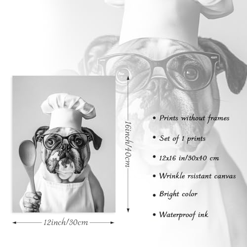 - Canvas Poster Specification: This dog chef wall art measures 12×16 inches / 30×40 cm, unframed, canvas prints. You can freely match any picture frame you like and fully enjoy DIY fun.