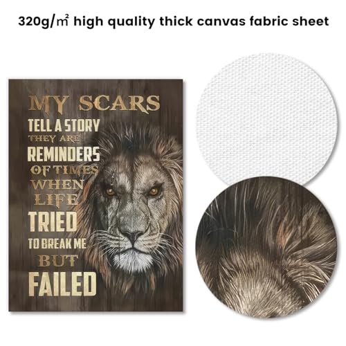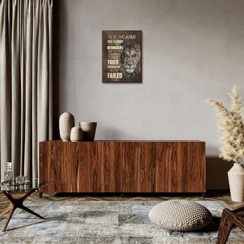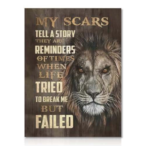 - Unique Design: The motivational words lion wall art features a lion with a scar and the inspirational quote "my scars tell a story they are reminders of times when life tried to break me but failed." It will encourage you every time you see it.