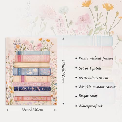 - Boho Reading CANVAS PRINTS: This canvas paint shows an amusing scene of Book Stack with Flowers Canvas Print, add great interest to your room. Perfect for bathroom, restroom, living room, bedroom, office, or any room in need of interest.