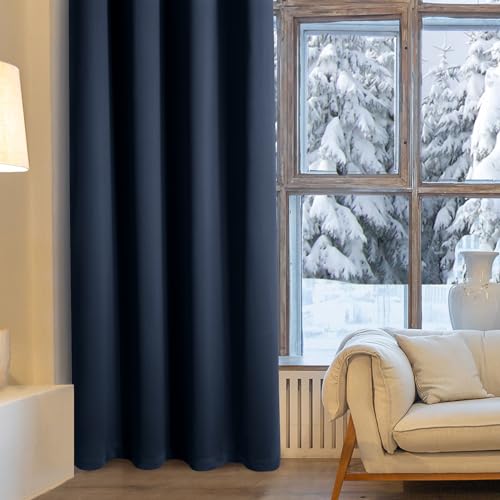 - Superior Blackout & Insulation – Crafted from 100% high-density polyester with a thick microfiber lining, this thermal curtains offer up to 100% light blocking, effectively reducing draughts and lowering winter heating bills. Keeps rooms cool in summer and warm in winter.