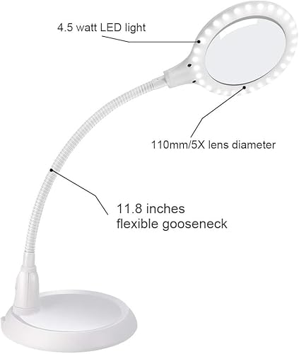 - 【Adjustable Gooseneck and Sturdy Base】The magnifier lamp has a 30cm gooseneck that bends in any direction so you can position it exactly how you need, then frees your hands.Magnifying glass with 30pcs Led light is enough brightness for your workbench and craft,woodworking, painting, crafting, and soldering projects and professional use.