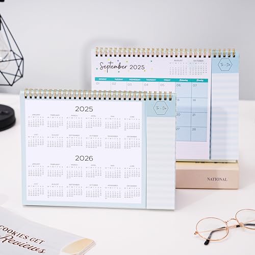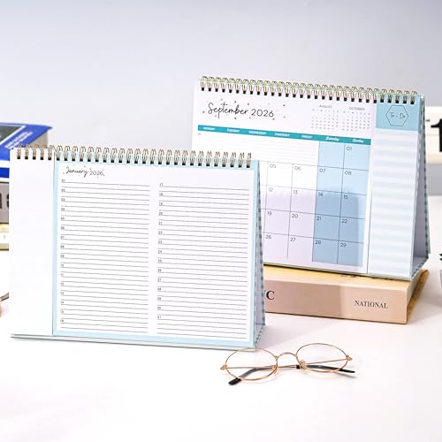 - SIMPLE DESIGN – Pefect size of 25.3 x 7.8 cm desk calendar 2025-2026 stands frimly in any desk and moves freely to decorate your own place. Simple layout makes your daily plan at a glance in every large equal blank.