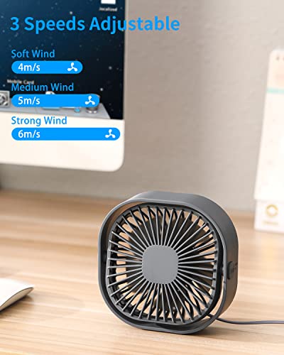 - [3 Speeds Adjustable & Rotatable Small Fan] The personal fan with 3 adjustable speed is adequate for your various cooling demand, just press the power button to change the speed, and the fan can be adjusted 360 degrees up and down. This provides comfortable cooling feeling anywhere you are