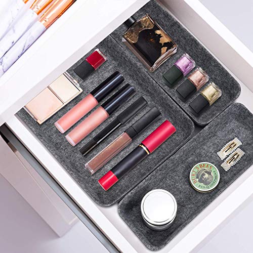 - High Grade Material — This drawer organisers boxes are made of 100% polyester with comfortable touch feeling, soft enough to prevent scratching. Mix and match for any drawer size and storage need. Perfect for home, office, school storage and organization. Add a modern touch to your office or home.