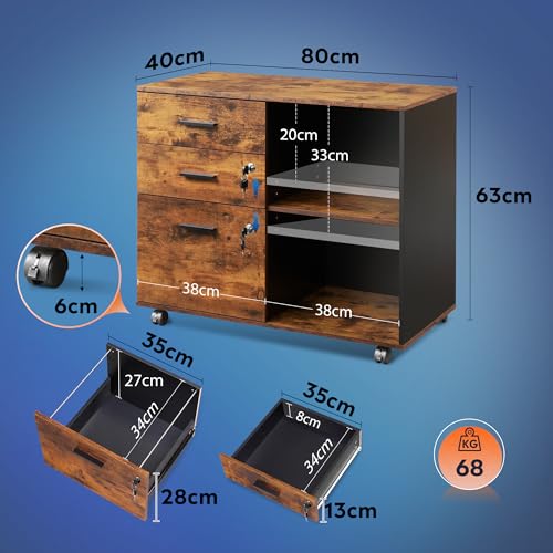 - Scratch-Resistant & Waterproof:Crafted with a scratch-resistant and waterproof surface, this filing cabinet is easy to clean and maintain, ensuring it looks like new even after extended use. The sturdy structure can support up to 68kg, guaranteeing secure storage of your office supplies.