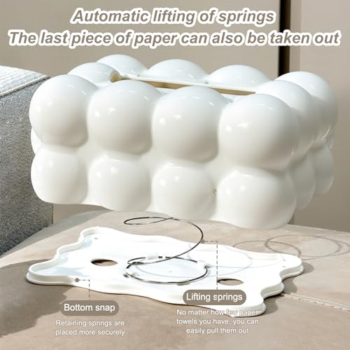 - 【Modern Luxurious Design】: Imbued with the concept of modern luxury, this white cloud-shaped tissue box harmonizes its smooth lines and dreamy cloud form to introduce a breath of understated elegance to your living space. More than just a practical household item, it's a statement of your unique and elegant taste in decor 【High-quality PP Material】: The tissue box is meticulously crafted from Polypropylene (PP), renowned for its superior durability, chemical resistance, and lightness. This ensures that the tissue box is not only sturdy and durable but also easy to clean and durable