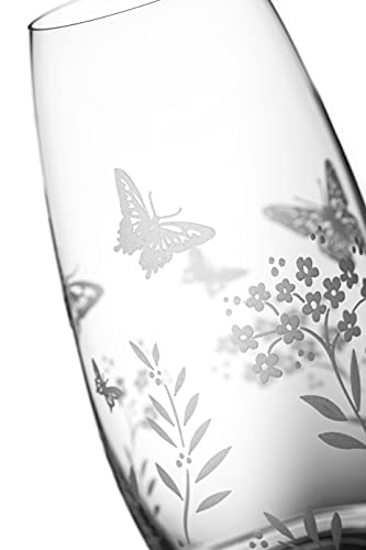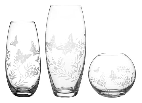 - Crystal Butterfly Vase. Barrel shaped vase etched with an intricate, matt butterfly in the wild flowers pattern.